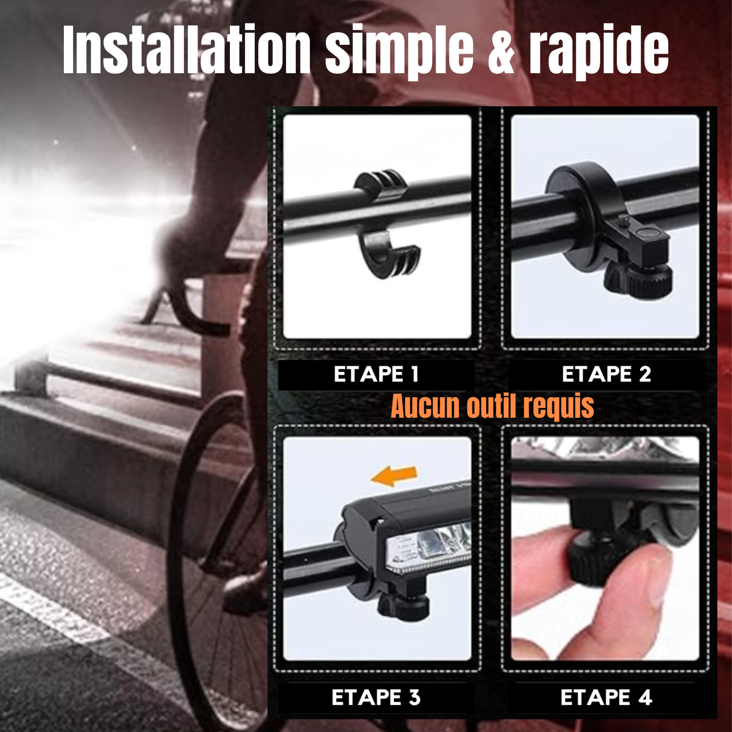 Oui, la lampe de vélo est équipée de 6 LED puissantes qui offrent un éclairage ultra-large à 180°, assurant une visibilité maximale de nuit. Vous pouvez rouler en toute sécurité, même dans l'obscurité.